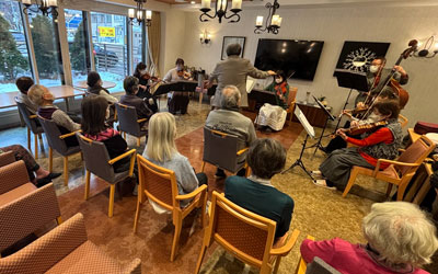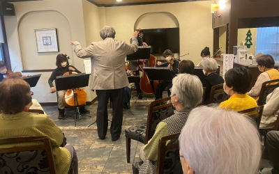 2025.12.16/12.19 フィオーレ合奏団様よりクラシックミニコンサートが行われました。 クラシック音楽の音色を楽しみ、豊かな時間を過ごしていただけました。