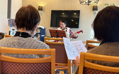 グランウエルネス菊水で楽団ひとり様より歌とマジックショーが行われました。