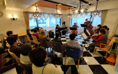 2025.12.16/12.19 フィオーレ合奏団様よりクラシックミニコンサートが行われました。 クラシック音楽の音色を楽しみ、豊かな時間を過ごしていただけました。