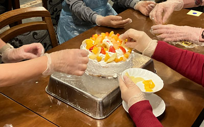 2025.12.25 クリスマスイベントが行われました。 クリスマスケーキを手作りして、特別な日を過ごしていただけました。